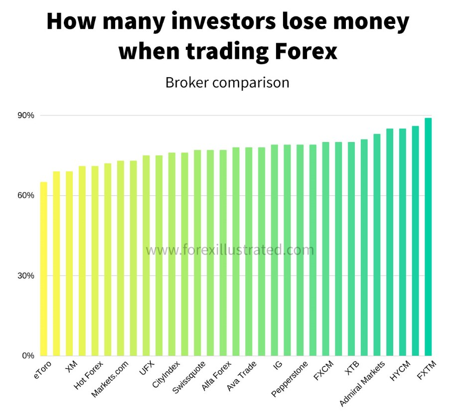 These brokers may attract the least experienced traders and fail to provide them with sufficient learning and training tools. The above results are combined for skilled/institutional traders and retail traders; therefore, we assume the 95% loss could be similar for only retail traders.